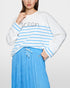 Effortlessly cool, this oversized sweatshirt blends comfort with a nautical-inspired aesthetic. The striped design and embroidered Ocean motif lend a relaxed yet elevated feel, perfect for layering over denim or shorts for off-duty days, travel, or breezy seaside styling.
