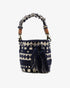 Crossbody Bag With Macrame Handle - Navy Ecru Diamond